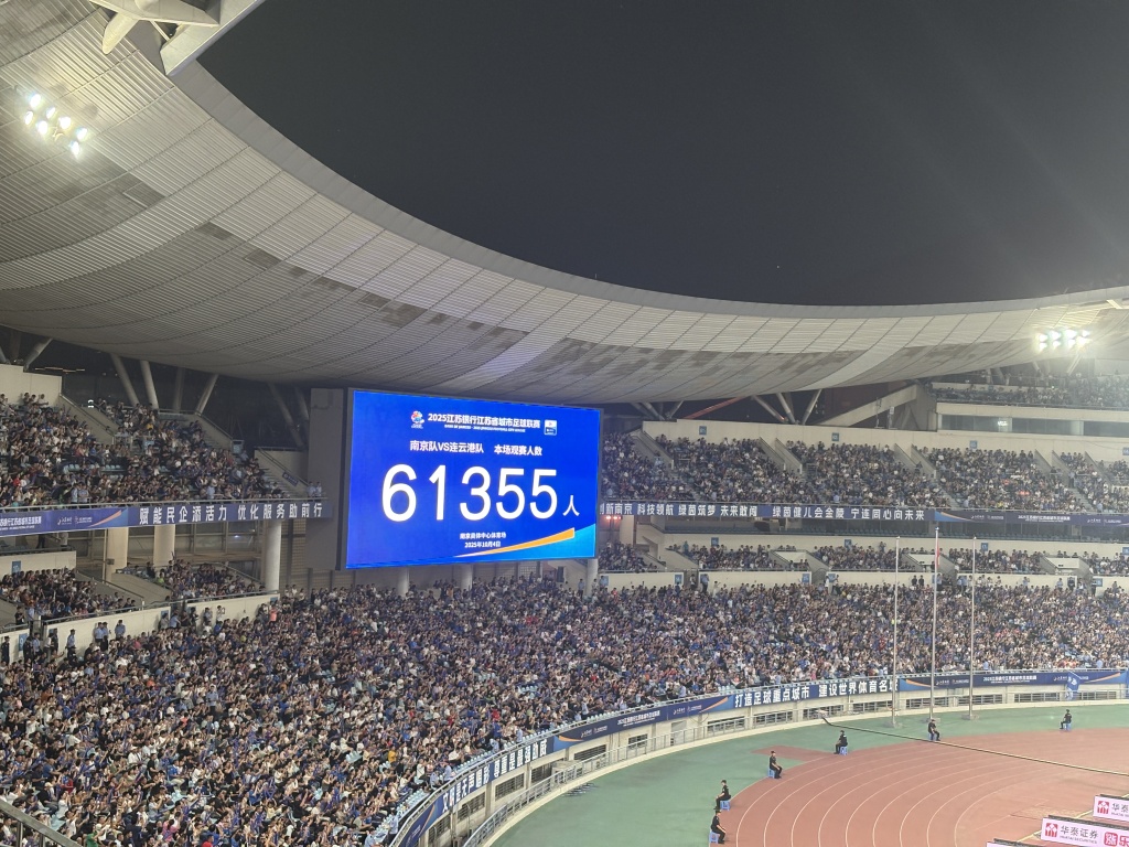 据官方统计,今天来到南京奥体现场观看这场比赛的观众人数为61355人,超过了上一场的61106人,再次刷新中国业余赛事和江苏省城市足球联赛(“苏超”)的上座人数新纪录。
