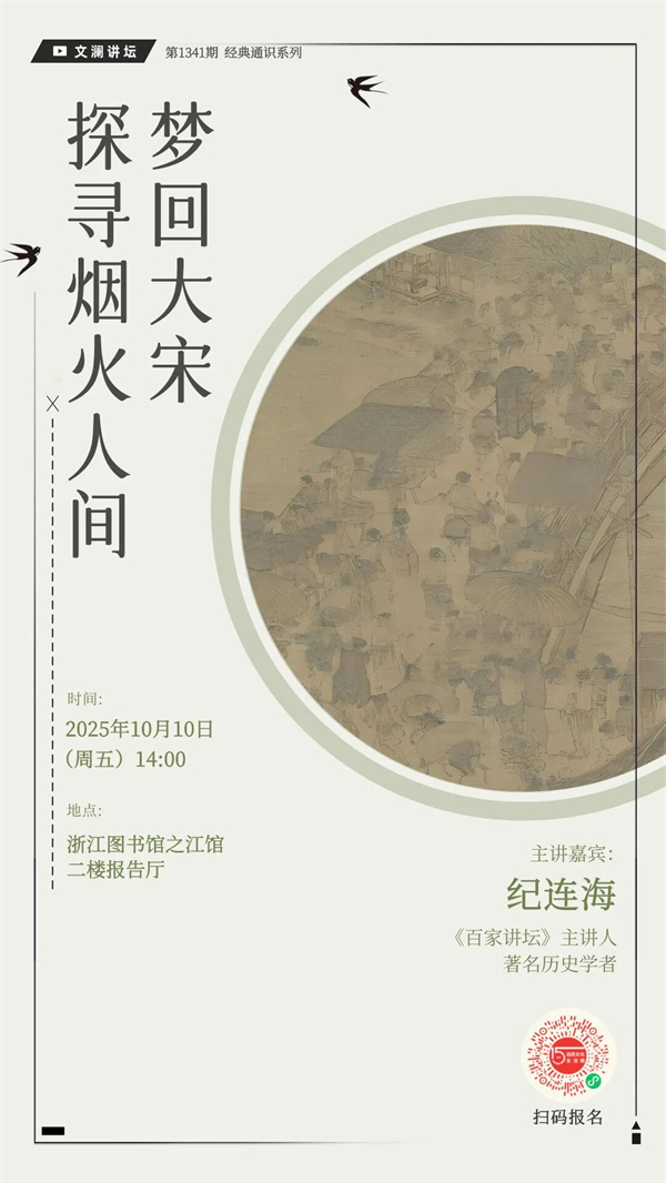 你是否曾梦想过,穿越千年时光,漫步于汴京与临安的街头?你是否曾好奇过,宋朝人的市井生活,究竟有多么活色生香?10月10日下午,在浙江图书馆之江馆,央视《百家讲坛》“十大名嘴”之一的著名历史学者纪连海先生,将携新作《纪连海品梦华录》与《纪连海品梦粱录》,带来重磅讲座——“梦回大宋,探寻烟火人间”,从书本出发,还原一个真实而鲜活的宋朝社会图景。