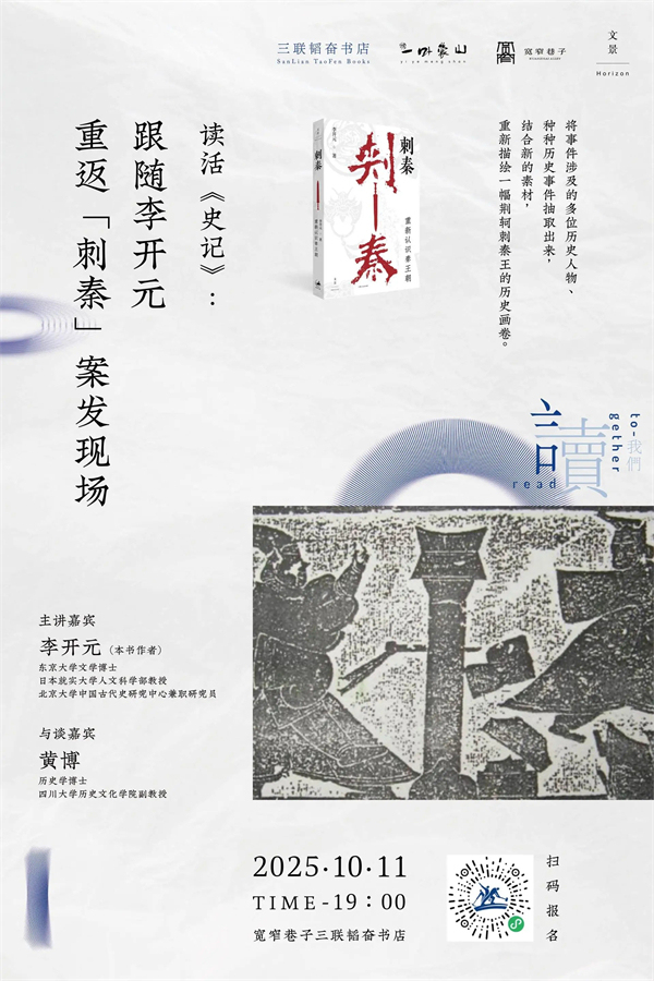 在中国漫长的历史长卷中,荆轲刺秦王的故事无疑是最为悲壮、最具戏剧性的篇章之一。在《刺秦》中,李开元从历史考证的视角,解读《史记》中“荆轲刺秦王”的真伪虚实,将其中的多位历史人物、涉及的种种历史事件抽取出来,补充新的素材,与读者朋友一道,做一番历史侦探破案的尝试,重新描绘一幅荆轲刺秦王的历史画卷。在此基础上,打破常规,将新绘的画卷延伸到想象的领域。10月11日晚,让我们跟随李开元重返“刺秦”案发现场,从“图穷匕见”的督亢地图到秦始皇的“王负剑”,从秦舞阳的心理崩溃到李斯《谏逐客书》的重新审视,以严谨的考据与大胆的假设,追问历史的另一种可能。