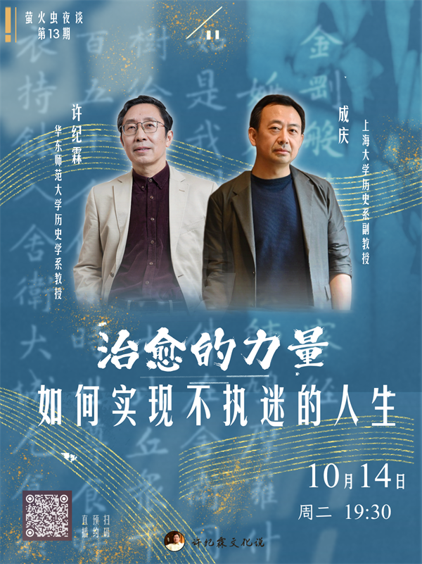 成庆的音频课《人生解忧:佛学入门四十讲》,已化作数十万人的“枕边梵音”,同名纸书更跃居年度畅销榜。今秋,他再携新课《现代视野中的金刚经》归来——让千年般若与现代语境劈面相逢,在“应无所住”的刀口上,替我们剖开惯性思维的硬痂,重估世界,也重塑自己。当心理学给出安抚,哲学给出思辨,佛学则递出一柄“慧剑”——斩断缠缚,而非斩断希望。10月14日晚,许纪霖教授邀成庆副教授对坐清谈:治愈的力量——如何实现不执迷的人生?愿君秉烛而来,在一句梵音、一声棒喝之间,认出那个本就自在、堪能安住的自己。