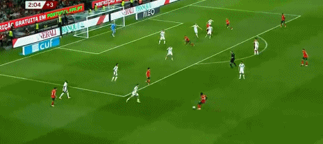 中场补时阶段,门德斯左路送出传球,C罗再度包抄破门,帮助球队将比分反超。