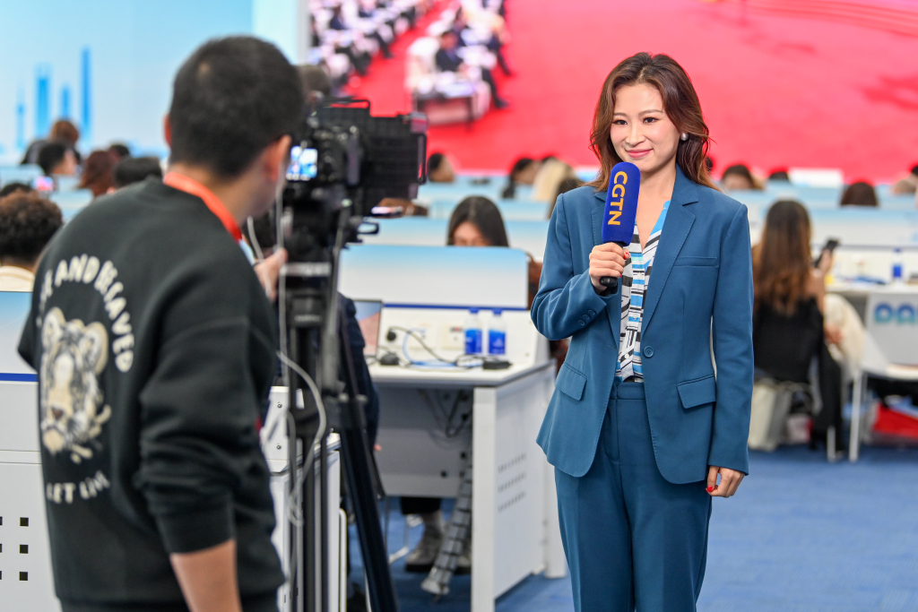 CGTN记者在录制节目。澎湃新闻记者 朱伟辉 图