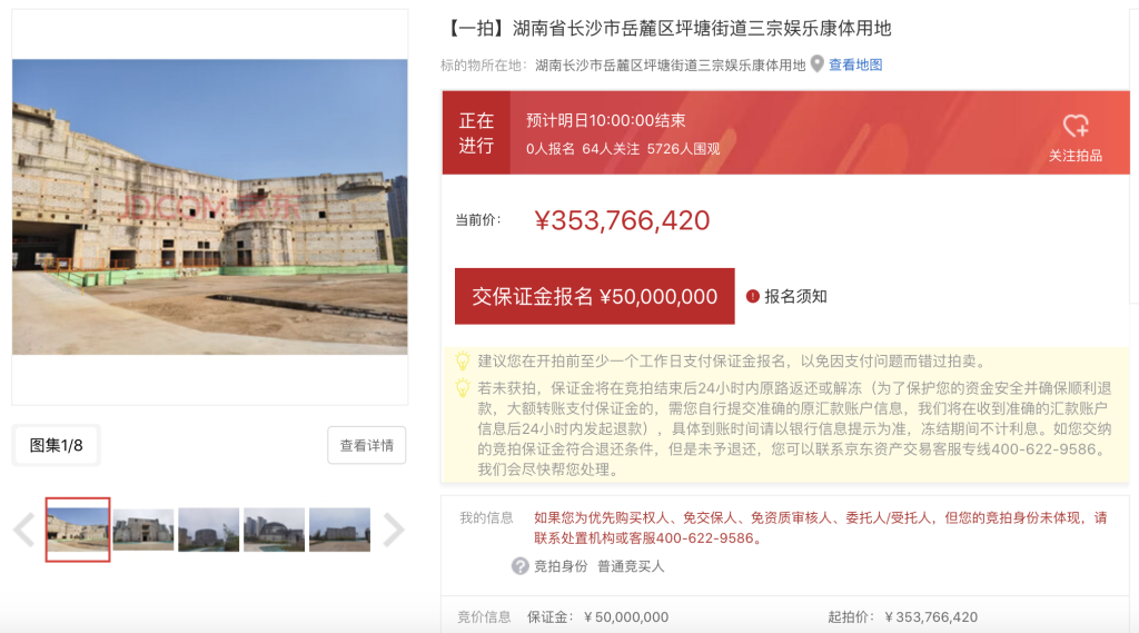 长沙大王山恒大童世界项目三幅地块被法拍:土地总面积17.2万平米,起拍价3.53亿元