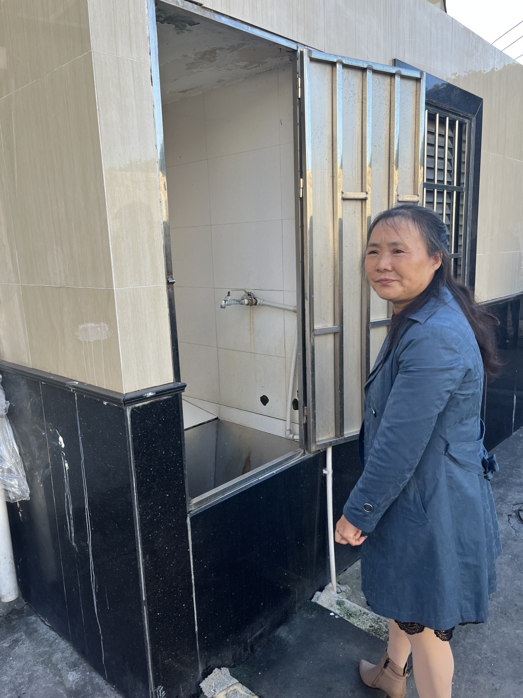 汤世秀介绍往日倒马桶的地方。澎湃新闻记者 邹娟 图