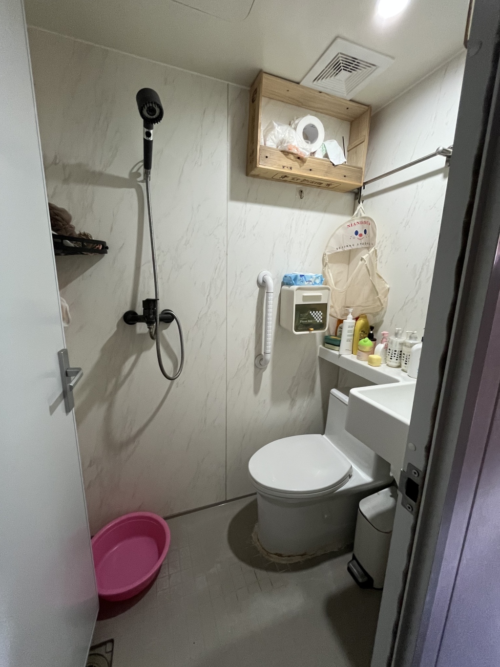 汤世秀家里改造出一间1平方米的卫生间,面积虽小却功能齐全。澎湃新闻记者 邹娟 图