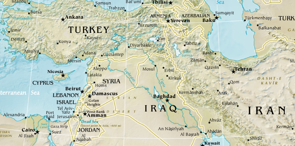 历史的背后是地理,地理是理解历史的要切。古代近东文明通常被称为美索不达米亚文明,“美索不达米亚”(Mesopotamia)是希腊语,意为“两条河之间的土地”,这两条河即著名的幼发拉底河(Euphrates)和底格里斯河(Tigris),它们几乎同源,都源自现今土耳其东南部的陶鲁思(Taurus)山脉。陶鲁思山脉起自现今土耳其安纳托利亚半岛西南部,东西走向,南北宽50-150公里,有许多海拔2000-3000米的高山,最高峰海拔近4000米。它从地中海东岸蜿蜒向东,绵延约1200公里,在现今亚美尼亚与高加索山脉相接。陶鲁思山脉是一道巨大的天然屏障,南面是叙利亚和伊拉克,北面是安纳托利亚平原。