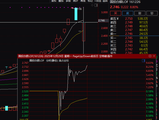 国投瑞银基金管理有限公司此前发布公告称,近期,国投瑞银基金管理有限公司(以下简称“本基金管理人”)旗下国投瑞银白银期货证券投资基金(LOF)A类基金份额(场内简称:国投白银LOF;交易代码:161226,以下简称“本基金”)二级市场交易价格波动较大,请投资者密切关注基金份额净值。2025年12月25日,本基金基金份额单位净值为1.9469元,截至2025年12月26日,本基金二级市场的收盘价为2.524元,明显高于基金份额净值,投资者如果盲目投资于高溢价率的基金份额,可能面临较大损失。