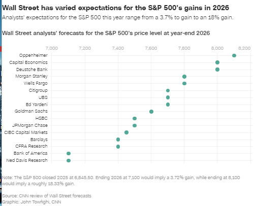 在经历连续三年的强劲上涨后,华尔街普遍预计标普 500 指数今年将继续走高,但市场不确定性依然居高不下。今年以来,美元汇率持续承压,而黄金、白银等避险资产价格则不断刷新历史纪录。
