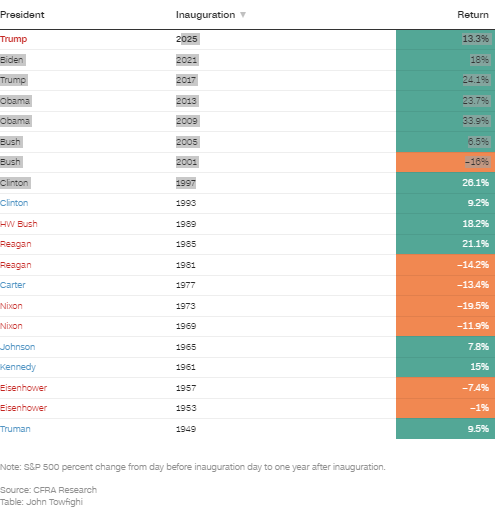 唐纳德・特朗普重返白宫后的首个执政年,美股表现创下自 2005 年小布什开启第二任期以来,历任总统新任期首年的最差纪录。